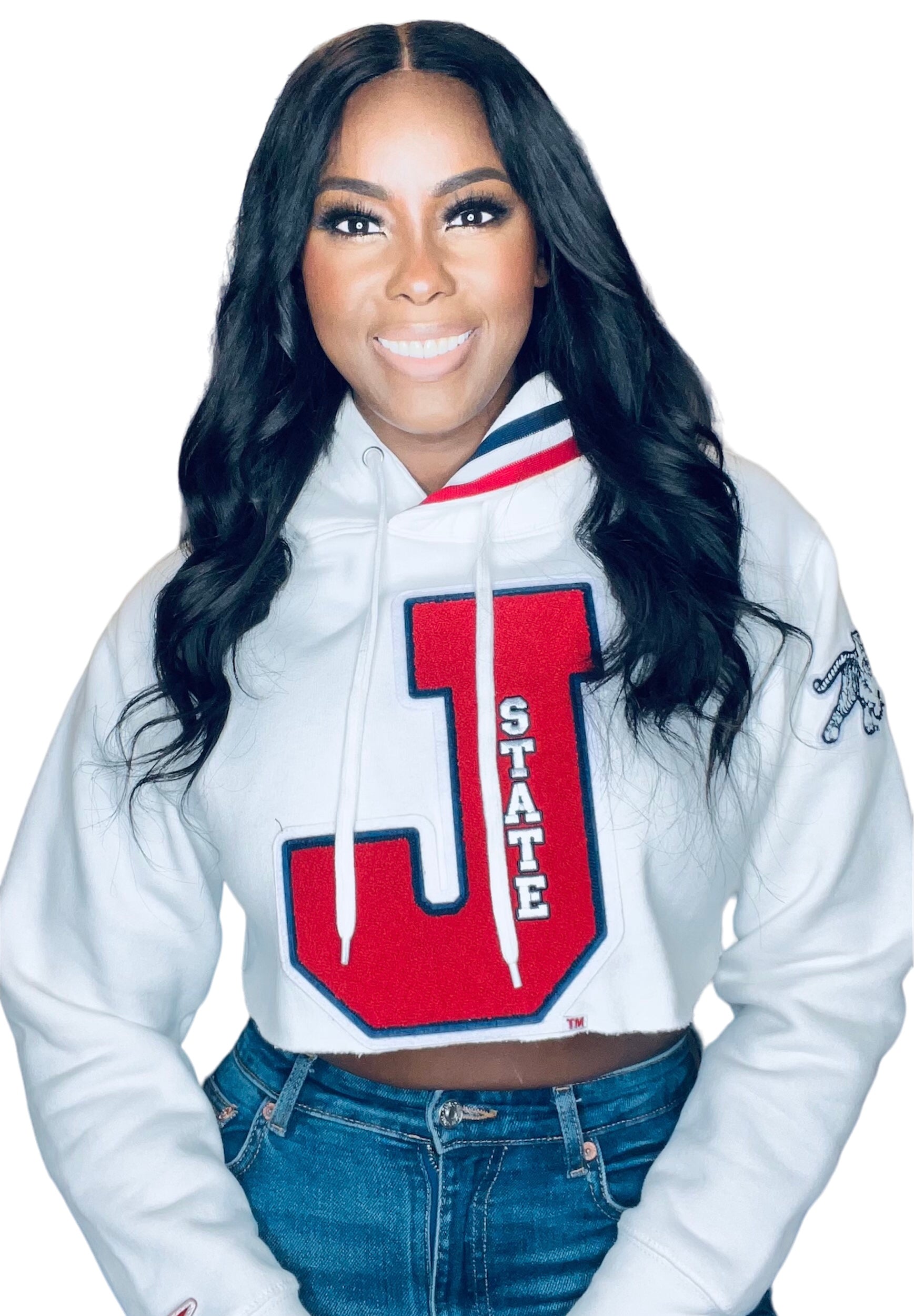 Jackson State Tigers Cropped “J State” Letterman Hoodie (Red “J” Logo)
